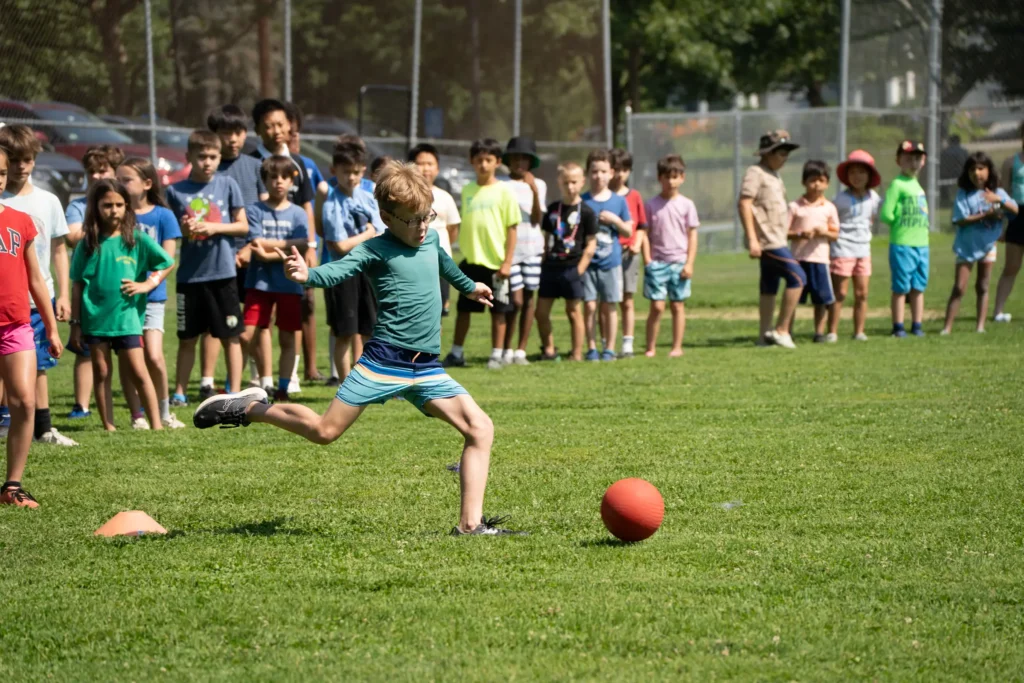 Activities that enhance campers’ developing coordination including sports, a physical team-building challenges and gaga ball.